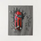 A bright red sportscar crashes right through a wall, making a super cool entrance into any car fans room.