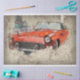 Red Car Vintage 20x30 Decoupage