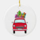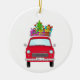 Red Car with Christmas Gifts Ceramic Tree Decoration