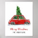 Decorate your home for the Holidays with this Personalised art poster featuring retro red car with Christmas tree.