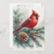 This thank you card presents a watercolor illustration of a cardinal bird and pinecones, evoking the beauty of nature. The vibrant red bird infuses the card with warmth. The front features a script-font "Thank You" greeting, and the reverse is designed for personalization, offering ample space for a customized message or a Christmas gift thank you note. The artwork was AI-generated, with design direction by Susang6.