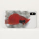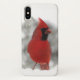 Here is an iPhone X case with a brilliant crimson red cardinal. He is truly the king of backyard birds! He is perched on a snowy rail eating black oil sunflower seeds while the winter snow swirls around him.