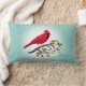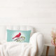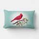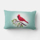 Beautiful red cardinal standing on a tree branch on teal background Pillow. Text, only on the front side, can be personalised.