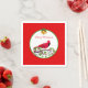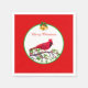 Christmas Red Cardinal Bird on Tree Branch on Red and White Paper Napkins.