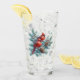 This beverage glass features an AI watercolor of red cardinal birds perched on pine branches with pinecones and snowflake accents. This image is perfect for the winter season. A set of glasses would be a thoughtful gift for a bird lover. Use this beverage glass for Christmas and throughout the winter season.