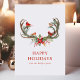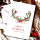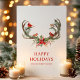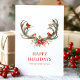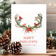 Red Cardinal Birds Happy Holidays Deer Antlers Holiday Card