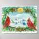 Red Cardinal Birds Winter Snow Village Painting Poster