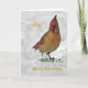 Red Cardinal female from front in snow w holly--tw Holiday Card