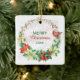 Here's a pretty Christmas ornament that makes a great gift for anyone! The front features a seasonal wreath filled with red and white poinsettia blossoms, pine boughs, and seed pods. A little red cardinal bird perches on one side, and a pale gold bow is opposite him. The matching green and red text at the middle may be customised to anything you'd like, or left as it is. A smattering of tiny gold confetti adds extra interest and sparkle. The back of the ornament has the same wreath image, with more custom text fields. Make it say whatever you'd like!