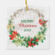 Red Cardinal Holiday Wreath Ceramic Ornament