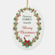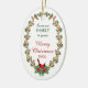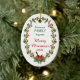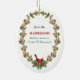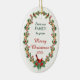 Here's a pretty Christmas ornament that makes a nice keepsake family gift. The front features an oval wreath with images of green leaves, holly berries, Christmas cookies, candy, and a bright red cardinal. At the centre are custom text fields in matching green and red. The back of the ornament has the same Holiday wreath and more custom text fields.