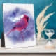 Red Cardinal Bird perching on a branch during a snow blizzard.