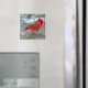 Red Cardinal (bird) in a snowstorm fridge magnet.