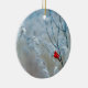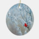 Ornament with a scenic nature photograph featuring a bright red cardinal. Contrasted against an outdoorsy winter backdrop with snow gently falling down.