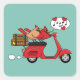 An illustration of a cute cartoon red cardinal lovers riding on a red scooter motorcycle while singing a love song. This kawaii bird couple design is a gift idea for heart lovers and valentines day lovers.