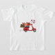 An illustration of a cute cartoon red cardinal lovers riding on a red scooter motorcycle while singing a love song. This kawaii bird couple design is a gift idea for heart lovers and valentines day lovers.