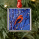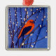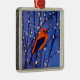 Lovely Christmas ornament in deep blue and red. A bright red cardinal sits on a pussy willow branch against a deep blue sky