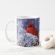 Red cardinal nestled upon snow covered spruce tips coffee mug