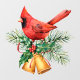 Celebrate this year's Christmas with this window cling featuring a red cardinal on a Christmas bells and evergreens bouquet.