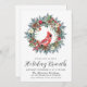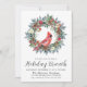 Impress your guests with this elegant Holiday party invitation. A red cardinal sits on the centre of a traditional pine wreath decorated with pinecones, berries and flowers. Christmas Party is written in a modern script. Your party details surround it. You'll easily have a professional invitation completed in minutes. This item is part of the Elegant Christmas Wreath Cardinal collection. It contains the templates you can use to create a unique invitation suite and coordinating party supplies.
