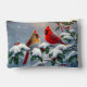A pair of northern red cardinals perch on a holly branch covered with red berries and snow.