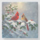 Red Cardinals and Holly in Snow Stone Coaster