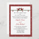 Celebrate your winter wedding in style with this holiday themed invitation with two red cardinals standing on garland decorated with hearts. The border is dark red with snowflakes. Coordinating pieces available in store.