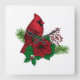 Hand-drawn red cardinal bird perching on a Christmas bouquet of fir branches poinsettia and red berries
