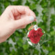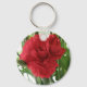 This beautiful keychain features a detailed photograph of a stunning red carnation flower. The photograph was taken using macro photography to show the beauty of this bright red bloom surrounded by green foliage.