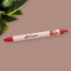 Red Cartoon Apple On Pink With Custom Text Black Ink Pen