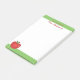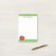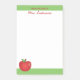Cute red cartoon apple illustration. The background colour is white with green borders on the top and bottom. There is a text area that now reads "From the desk of" together with a customisable text area for a name.