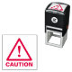 Red caution sign triangle warning icon rubber self-inking stamp for home, school, company or business office. Add your own text optionally. Handy for mailing breakable / fragile packages, handle with care stickers and more. Also available in other colours.