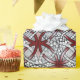 This intricate design consists of repeated Celtic knots that I drew and embellished for a unique version of intertwined rings, similar to a quilt block pattern called Double Wedding Rings. This version is done in rich colours of deep maroon red, black and white