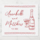 This personalised champagne bottle label features a charming and minimalist design in festive red tones, perfect for celebrating the newlyweds. A hand-drawn illustration of a champagne bottle and glass is centred on the label, now shown in coordinating red for a bold, modern touch.