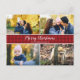 Customisable Holiday Greeting Cards, post card style. This design features space for 4 photos and a red check band with a holiday greeting in white. Personalise this design with 4 photos of your family. Use the design tools to edit the text and to add more photos.