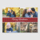 Customisable Holiday Magnetic Cards. This design features space for 4 photos and a red check band with a holiday greeting in white. Personalise this design with 4 photos of your family. Use the design tools to edit the text and to add more photos.