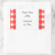 A customisable canning or soap sticker with a country red and white striped check pattern background. The text is in retro scripty letters on white doily. Click Customise It to change fonts, add or remove text, even save your design for later.