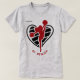 Here's a t-shirt suited for individual members of a cheerleading squad. A red silhouette cheerleader with pom poms is in front of a black pattern heart. Your custom text is at the bottom, and her name is at the top left. A thoughtful keepsake gift for a special time in their lives! *If you need a different colour scheme, message our store and we will try to accommodate!