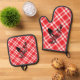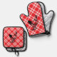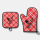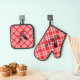 Red Chequered Chicken Oven Mitt & Pot Holder Set