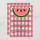 This design features a red chequered tablecloth pattern and a slice of watermelon. To change the font style, size or colour, click on the Customise It button. There is also a square invitation available for this design.