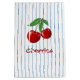 Original graphic painting of fresh juicy bright red cherries on a blue striped background. Goes great with retro, vintage, rockabilly, kitchy, 1940's, 1950's, farmhouse, midcentury modern themes. Fun print for kitchen, bedroom, bathroom items or cute clothes.
