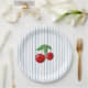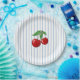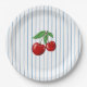 Red Cherries on Blue Stripes Graphic Pattern Paper Plate