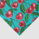 Red cherries on turquoise tissue paper