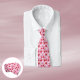 Red Cherries White Flower Pattern Pink Neck Tie