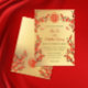 The design is done in layers. Please go to the layers section by clicking on "edit this design", if you need to remove the butterflies or shift the cherry blossoms for longer names. This traditional Chinese wedding invitation features red cherry blossom branches, a red double happiness symbol and two butterflies on a gold background.
