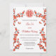 Against a white backdrop, the invitation showcases intricate cherry blossom branches in vibrant red, symbolizing the fleeting beauty of life. Two butterflies are symbolizing the union of two hearts beginning a journey of love and unity.