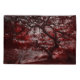 Spectacular Red cherry blossoms branching out from an old oak tree