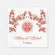 This Chinese wedding napkins feature red cherry blossoms and a red double happiness symbol on a white background. Bride and groom names in a traditional elegant script. Matching wedding suit available.