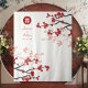 Oriental red and white cherry blossoms or sakura flowers with double happiness symbol. An elegant and romantic asian themed wedding design which is modern and classy.