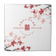 Red/White Cherry Blossoms And Simple Double Happiness Symbol, Elegant Chinese Wedding Favour / Gift Ceramic Tile Design With Chinese Wedding Auspicious Wishes, Personalised Couple's Names And Wedding Date.